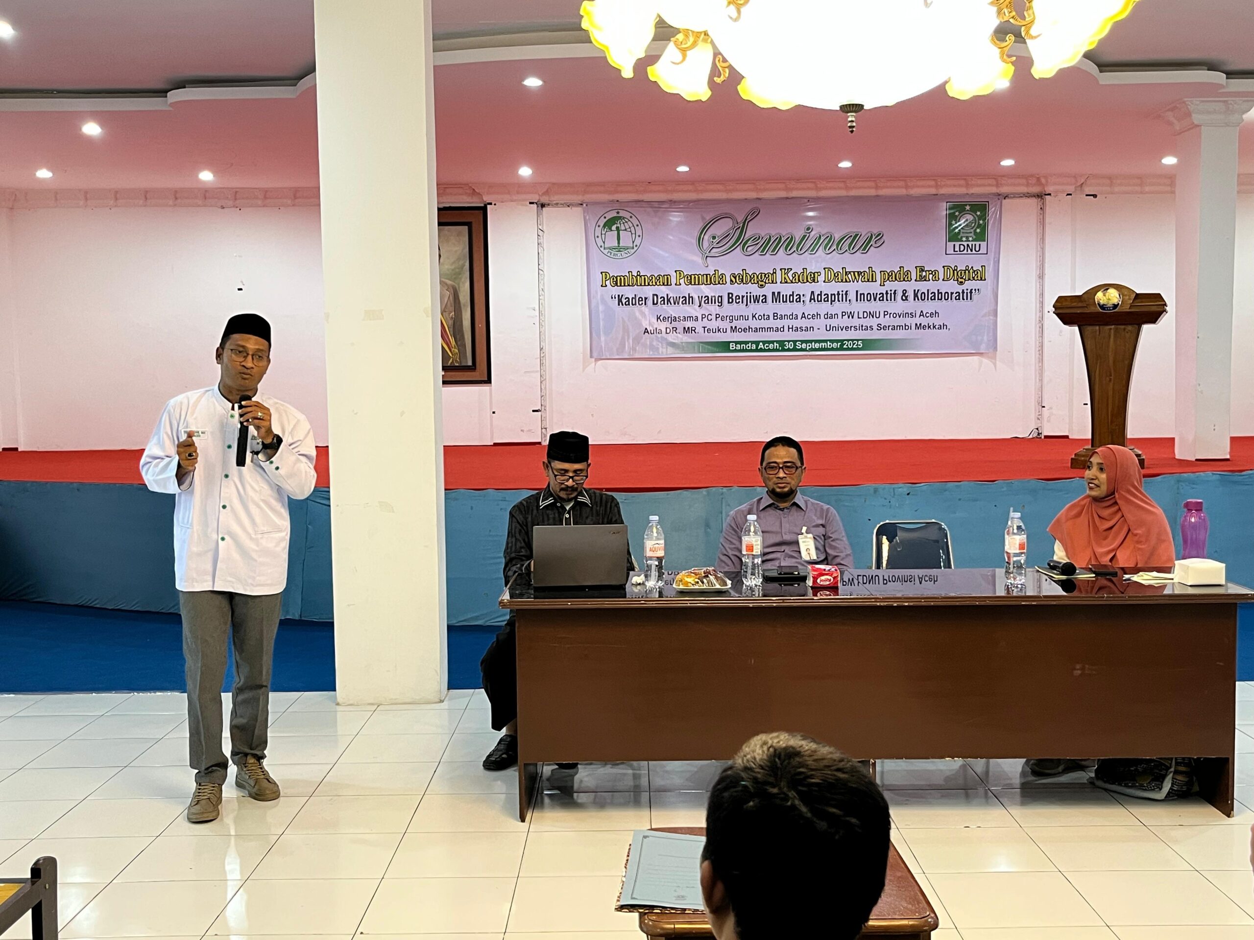 “Inilah yang diemban dan konsisten diperjuangkan oleh Nahdlatul Ulama (NU),” jelasnya saat membuka acara Pembinaan Pemuda sebagai Kader Dakwah pas Era Digital dengan tema “Kader Dakwah yang Berjiwa Muda, Adaptif, Inovatif, dan Kolaboratif”, yang dilaksanakan PW LDNU Aceh, Pergunu Banda Aceh, dan Kankemenag Kota Banda Aceh, di Universitas Serambi Mekkah, Banda Aceh, Selasa, 30 September 2025.