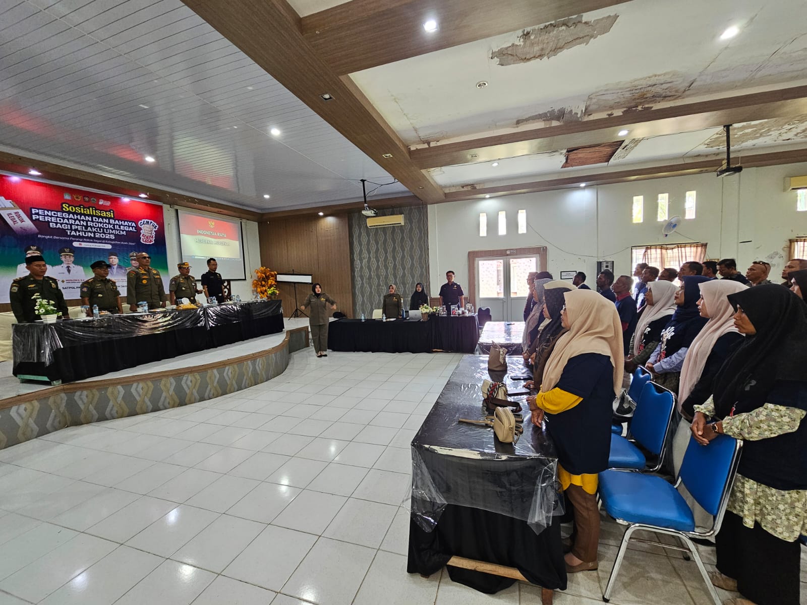 Aceh Jaya — Satuan Polisi Pamong Praja dan Wilayatul Hisbah (Satpol PP dan WH) Kabupaten Aceh Jaya menyelenggarakan kegiatan Sosialisasi Pencegahan dan Bahaya Peredaran Rokok Ilegal bagi Pelaku Usaha Mikro Kecil dan Menengah (UMKM). Selasa (14/10/2025)