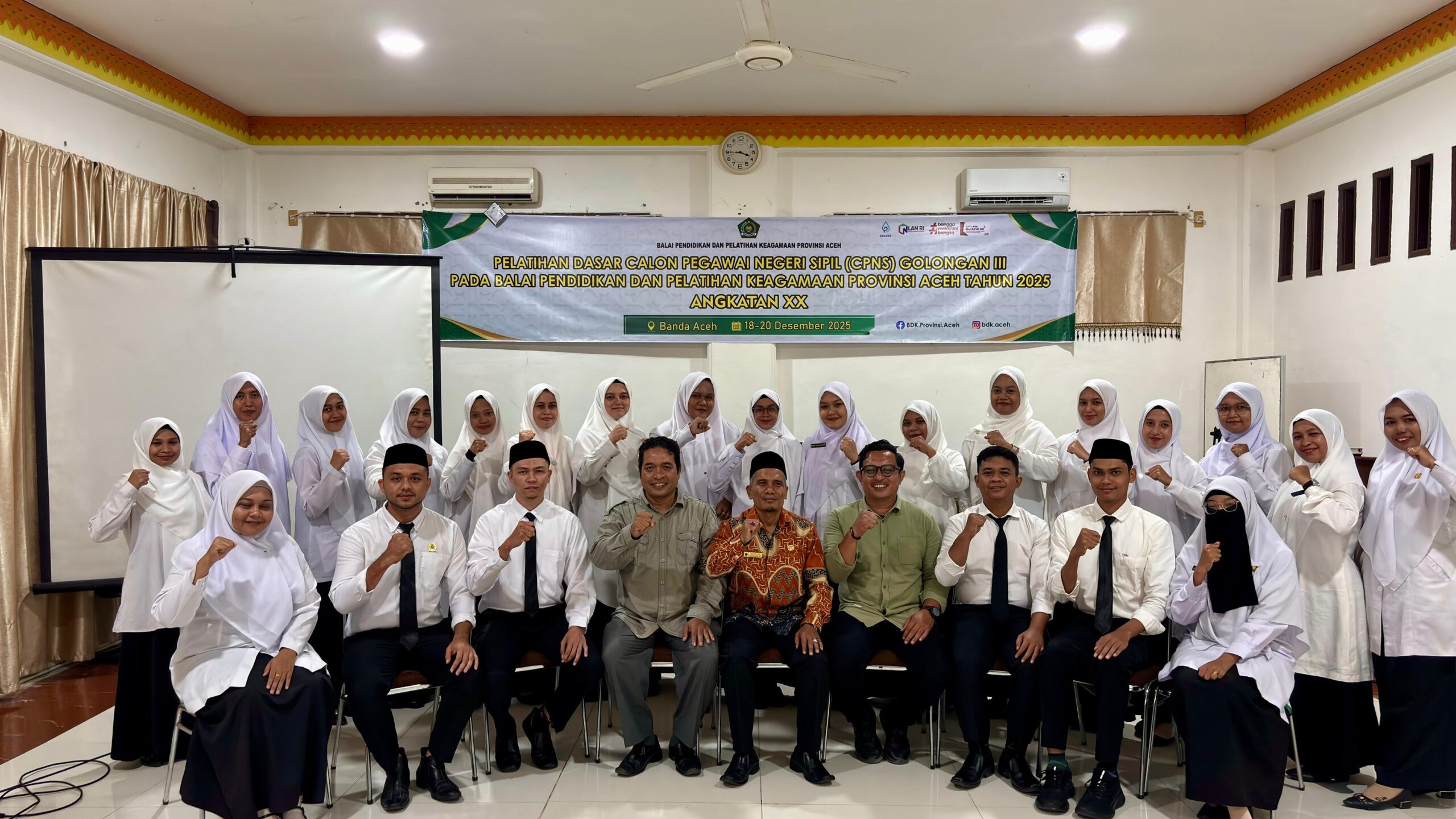 Banda Aceh, Bahaba.net — Balai Pendidikan dan Pelatihan Keagamaan (BDK) Provinsi Aceh secara resmi menutup pelaksanaan Pelatihan Dasar (Latsar) Calon Pegawai Negeri Sipil (CPNS) Tahun 2025. Kegiatan penutupan dilaksanakan pada Sabtu (21/12/2025) bertempat di Hotel Daka, Banda Aceh.