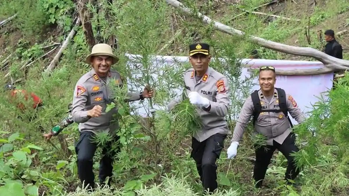 “Di lahan seluas kurang lebih setengah hektare itu, petugas menemukan sekitar 1.000 batang ganja dengan tinggi tanaman berkisar satu hingga dua meter dan usia tanaman diperkirakan empat bulan,” ujar Mukhsin.