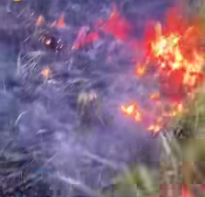 Video tersebut diunggah oleh akun TikTok @fiqal_88 dan memperlihatkan api dengan intensitas cukup besar melahap vegetasi rumput kering. Asap tebal tampak membumbung di udara, sementara seorang pria dalam rekaman terlihat berupaya memadamkan api secara manual di lokasi kejadian.